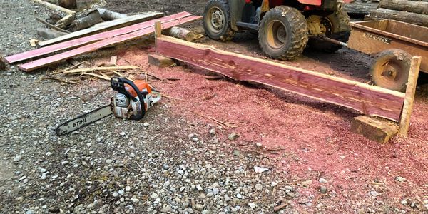 Most of my woodworking projects, are created from wood, that I have milled myself. Currently the process involves a chainsaw and "Gramps" vintage band saw. I find the wood on our property, or neighbors/family/friends. Most wood is harvested from trees blown down in storms.